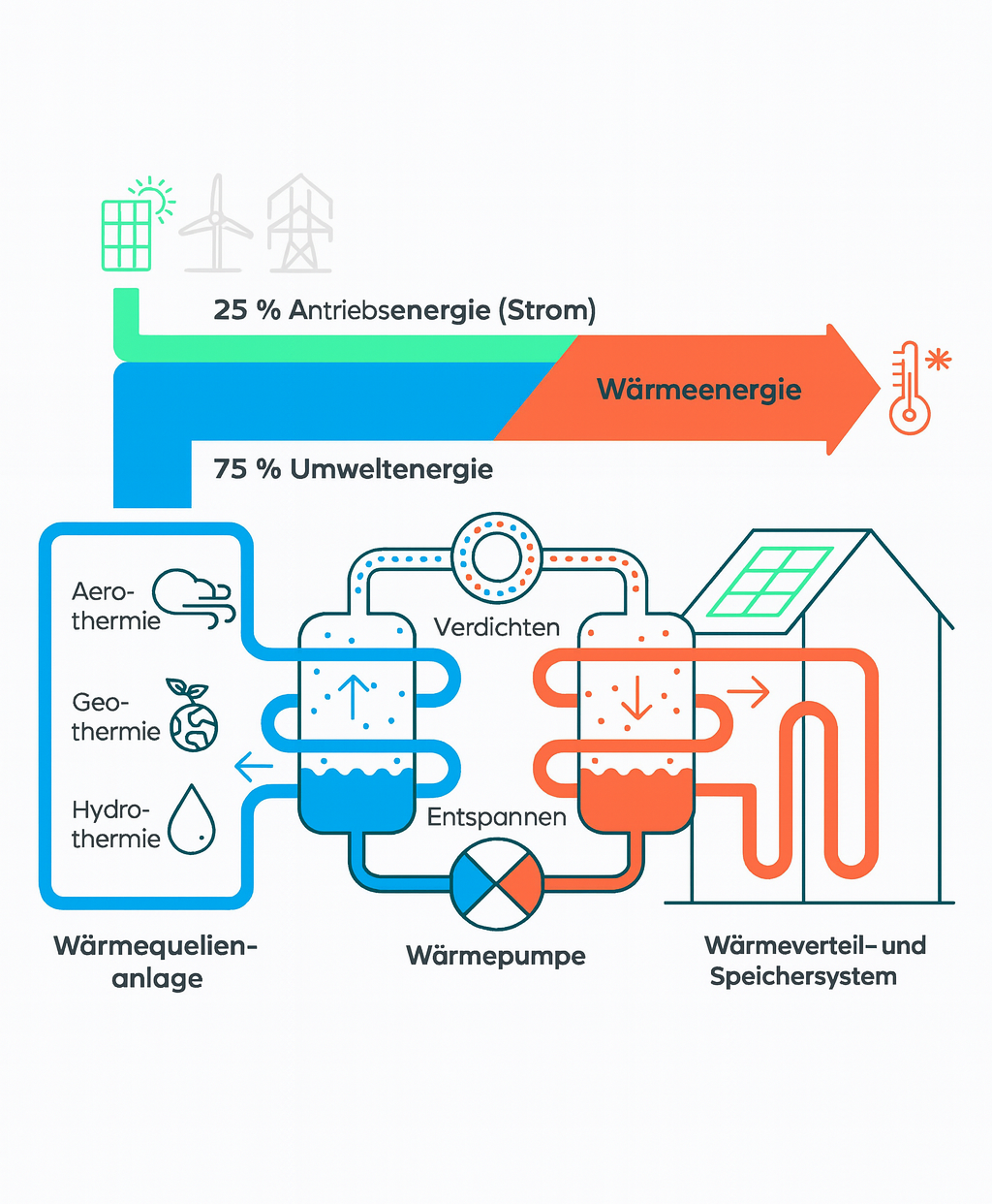 75 % Umweltenergie + 25 % Strom = 100 % Heizenergie.